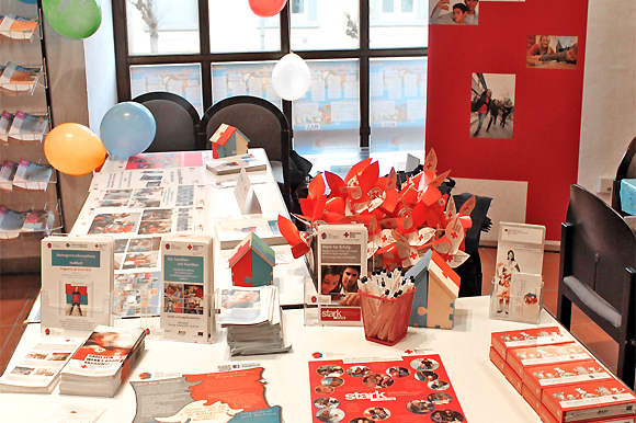 Familienmesse 2016Am Sonn­tag, den 6. März 2016, fand in der Stadt­hal­le in Haß­furt die Fa­mi­li­en­mes­se statt. Auch das Baye­ri­sche Rote Kreuz war durch das Mehr­ge­ne­ra­tio­nen­haus Haß­furt und die BRK Mit­tags- und Ganz­tags­be­treu­ung ver­tre­ten. Am Stand des BRK gab es In­for­ma­tio­nen rund um die An­ge­bo­te des MGH und der Mit­tags- und Ganz­tags­be­treu­ung, die vor al­lem im Be­reich Kin­der­be­treu­ung und Ver­ein­bar­keit von Fa­mi­lie und Be­ruf eng mit­ein­an­der kooperieren.
