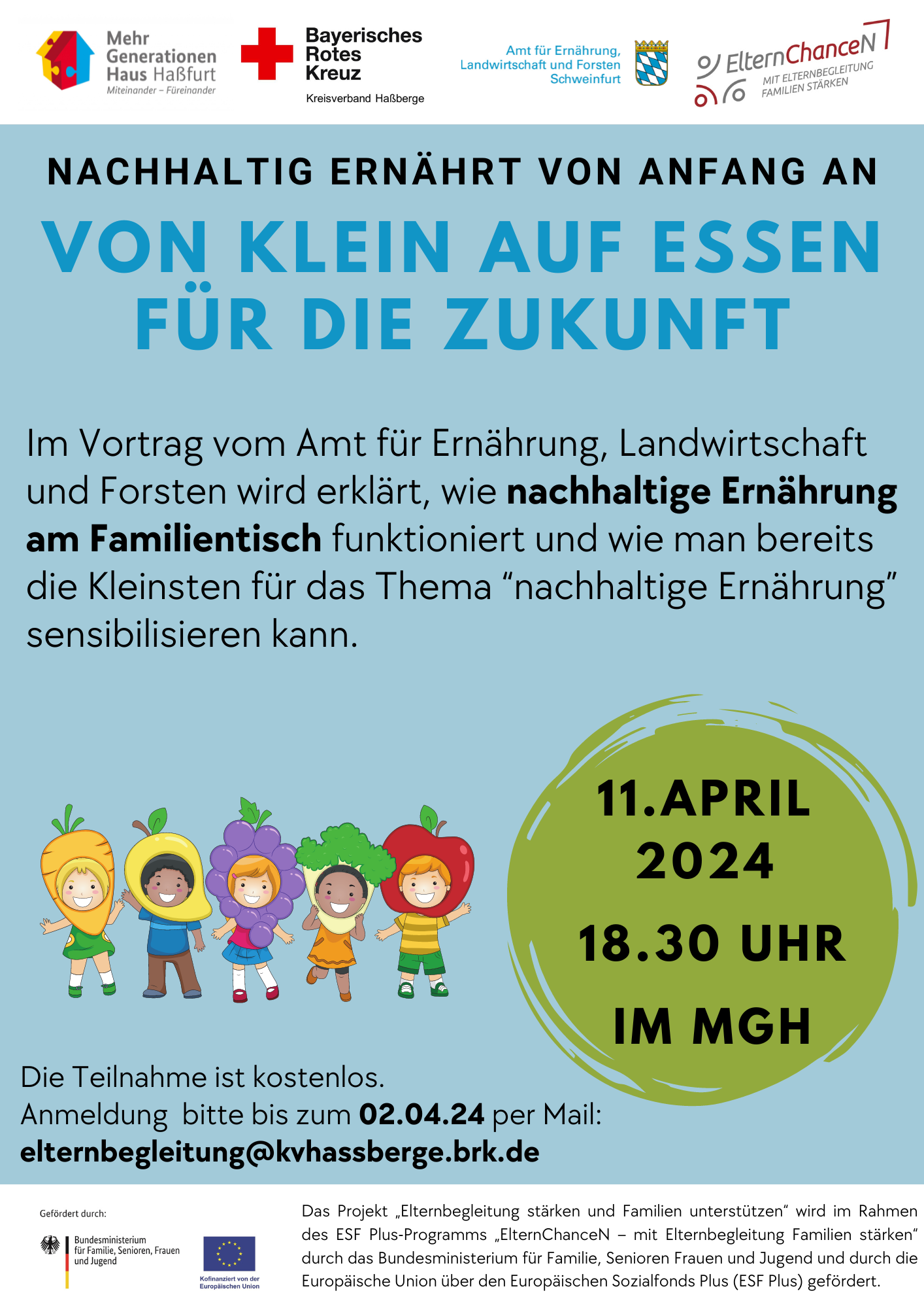 Die Teilnahme ist kostenlos. Die Anmeldung ist per E‑Mail elternbegleitung.kv-has@brk.de oder unter der Telefonnummer 09521–952825‑0 bis 02.04.2024 möglich.