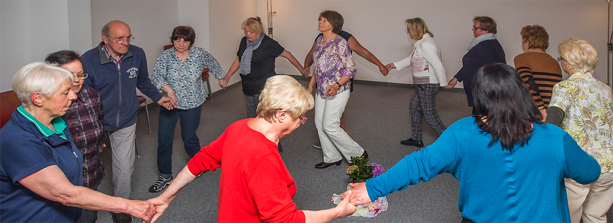 Die an­ge­bo­te­ne Viel­falt an Tanz­for­men als Grup­pe in un­ter­schied­li­chen For­ma­tio­nen aus al­ler Welt – bei­spiels­wei­se Ciro aus dem Bal­kan, Pol­ka aus Ost­eu­ro­pa oder me­xi­ka­ni­sche Tän­ze – er­for­dern kei­ne Vor­kennt­nis­se. Ne­ben der po­si­ti­ven Wir­kung für Geist und See­le wird auch die Be­weg­lich­keit, Kon­di­ti­on, Ko­or­di­na­ti­on, Re­ak­ti­on, Ba­lan­ce und Kon­zen­tra­ti­on ge­för­dert und ist so­mit auch eine prä­ven­ti­ve Maß­nah­me ge­gen Alz­hei­mer und Demenz.